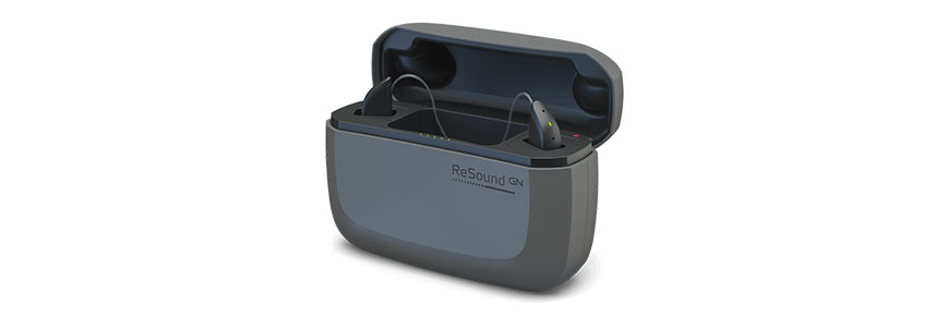 ReSound ONE offers two different charger options serve as stylish, portable and protective cases. Choose the Premium Charger with an onboard battery for up to three days of quick charging on the go, without the need for a power outlet. Or the ReSound ONE Standard Charger gives you all the at-home charging capabilities you need in a small elegant design.